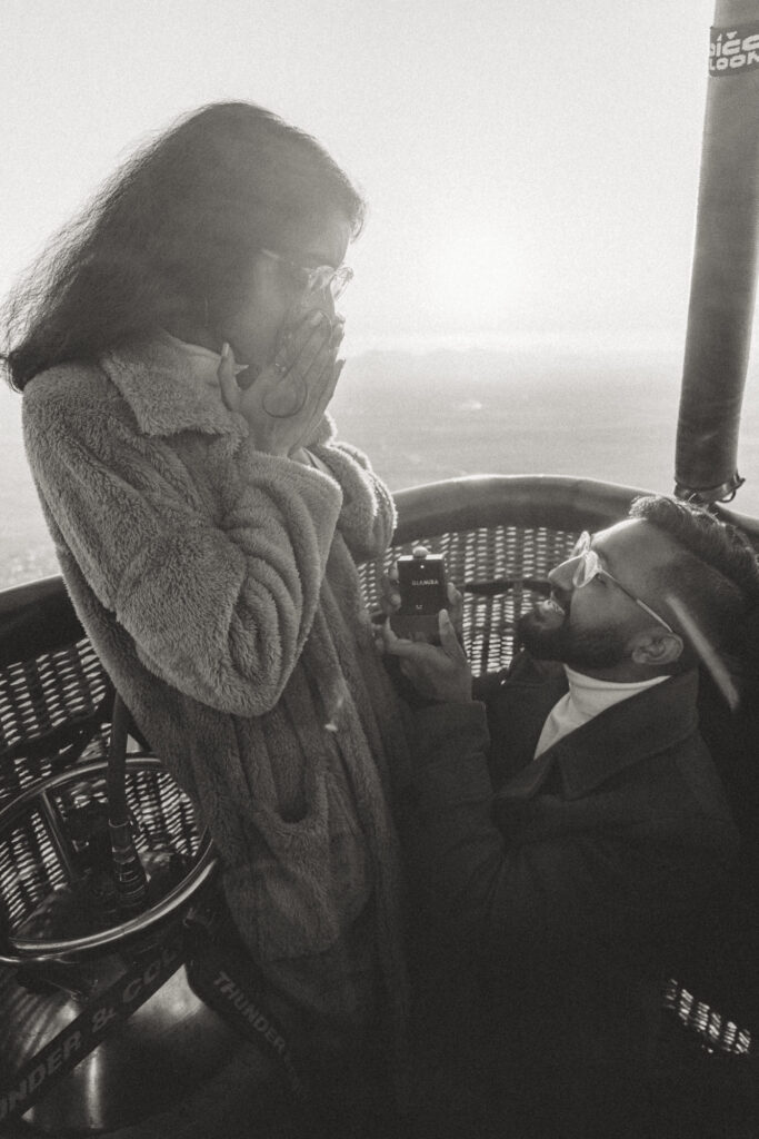 One of the most amazing aspects of Tom & Rigi’s proposal was the absolute peace. Besides a little flame now and then, the only sounds were the newly engaged couple laughing and talking together… and yelling down to the houses when we were landing that she said yes! Proposing can be such an intimate experience and taking a hot air balloon ride was a unique way to make it a truly private moment all their own.
