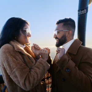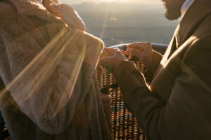 One of the most amazing aspects of Tom & Rigi’s proposal was the absolute peace. Besides a little flame now and then, the only sounds were the newly engaged couple laughing and talking together… and yelling down to the houses when we were landing that she said yes! Proposing can be such an intimate experience and taking a hot air balloon ride was a unique way to make it a truly private moment all their own.
