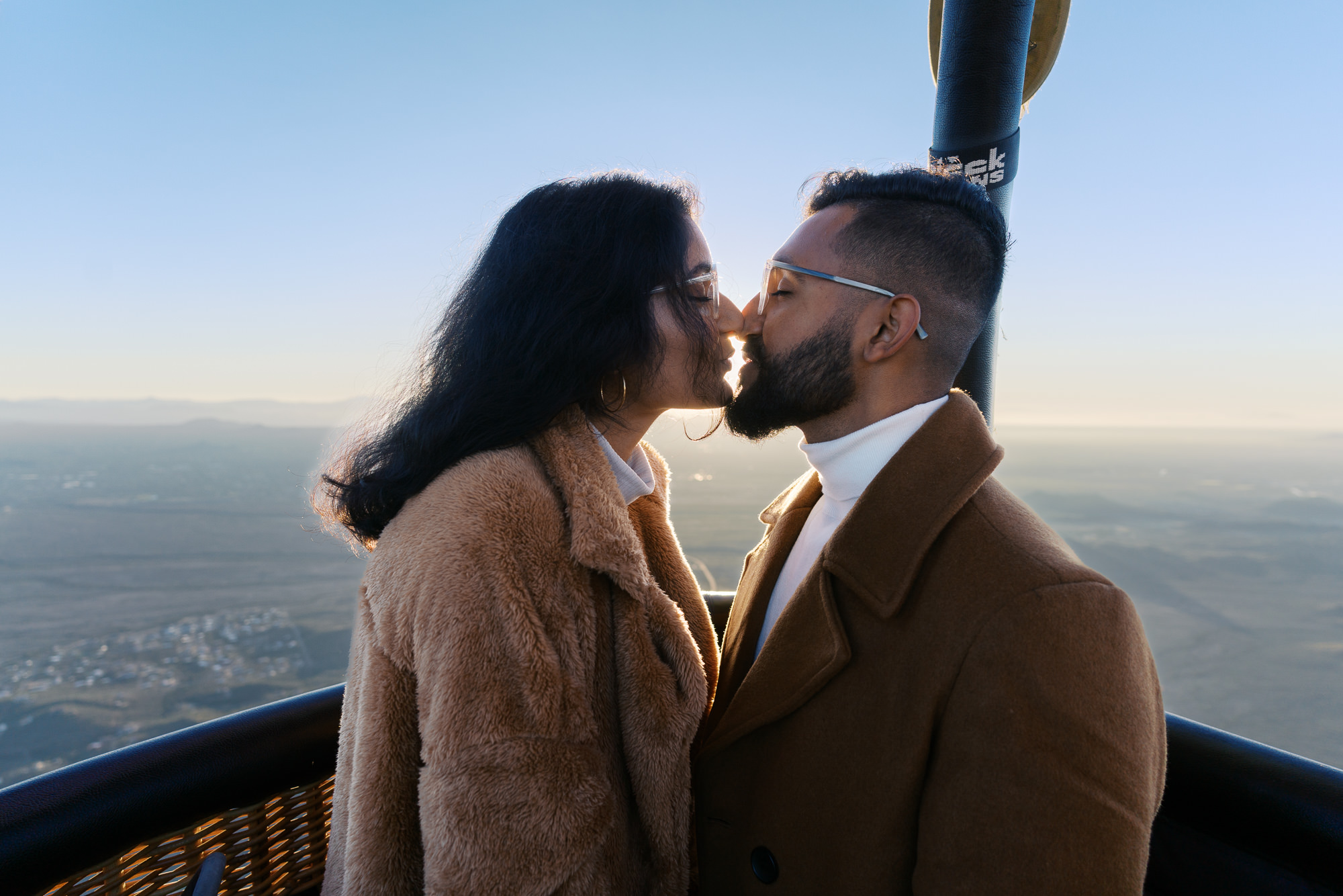 2. Coordinate timing with your hot air balloon pilot. Tom & I worked out a signal with the pilot so he knew when to swing the balloon around to frame the sunrise for that gorgeous lighting. Try a specific phrase or hand signal to feel like a spy.